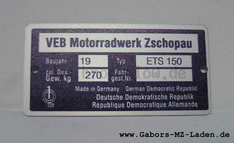 Typenschild ETS 150