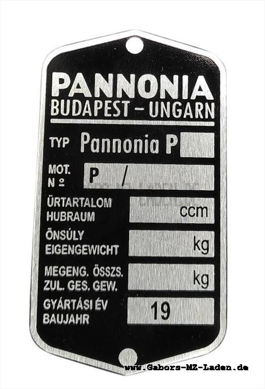 Typenschild Pannonia P Serie